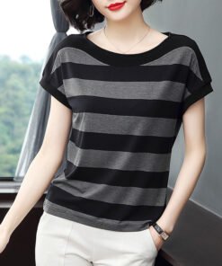 Schreibe die erste Bewertung für „Vapetix M-4XL 2025 Summer Plus Size Women’s Mother’s Wear Fat Mm Slimming Striped Loose Short Sleeve T-Shirt Top“ Antworten abbrechen