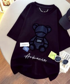 Vapetix M-4XL AL39# Cute Bear Versatile Casual Summer Top Loose Fitted Plus Size Medium Long-Sleeve T-Shirt for W