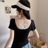 Vapetix M-4XL Plus Size Fat Girls Pure Cotton Asymmetric Shoulder Printed Short Sleeve T-Shirt Women’s Summer New