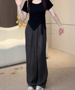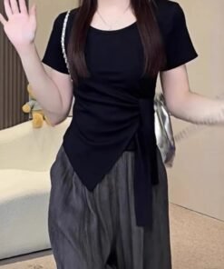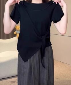 Vapetix M-4XL Pure Cotton Design Sensory Irregular Strapped Waist-Snapping Short-Sleeve T-Shirt for Women – Summe