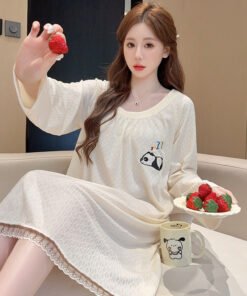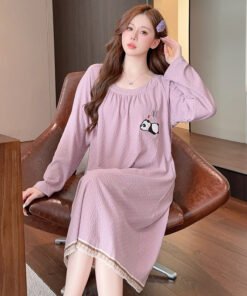 Vapetix M-5XL Lace Printed Nightgown for Women – Spring and Autumn Sweet Princess Style Long-Sleeved Medium-Long