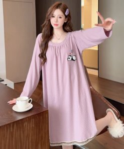 Vapetix M-5XL Lace Printed Nightgown for Women – Spring and Autumn Sweet Princess Style Long-Sleeved Medium-Long
