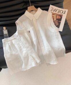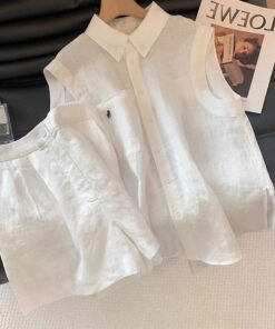 Vapetix M 70-95-2XL 126-140 Lao Qian Windy Casual Linen Set for Women – Summer Thin Breathable Polo Neck Sleeveless Shirt and S