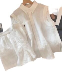 Vapetix M 70-95-2XL 126-140 Lao Qian Windy Casual Linen Set for Women – Summer Thin Breathable Polo Neck Sleeveless Shirt and S