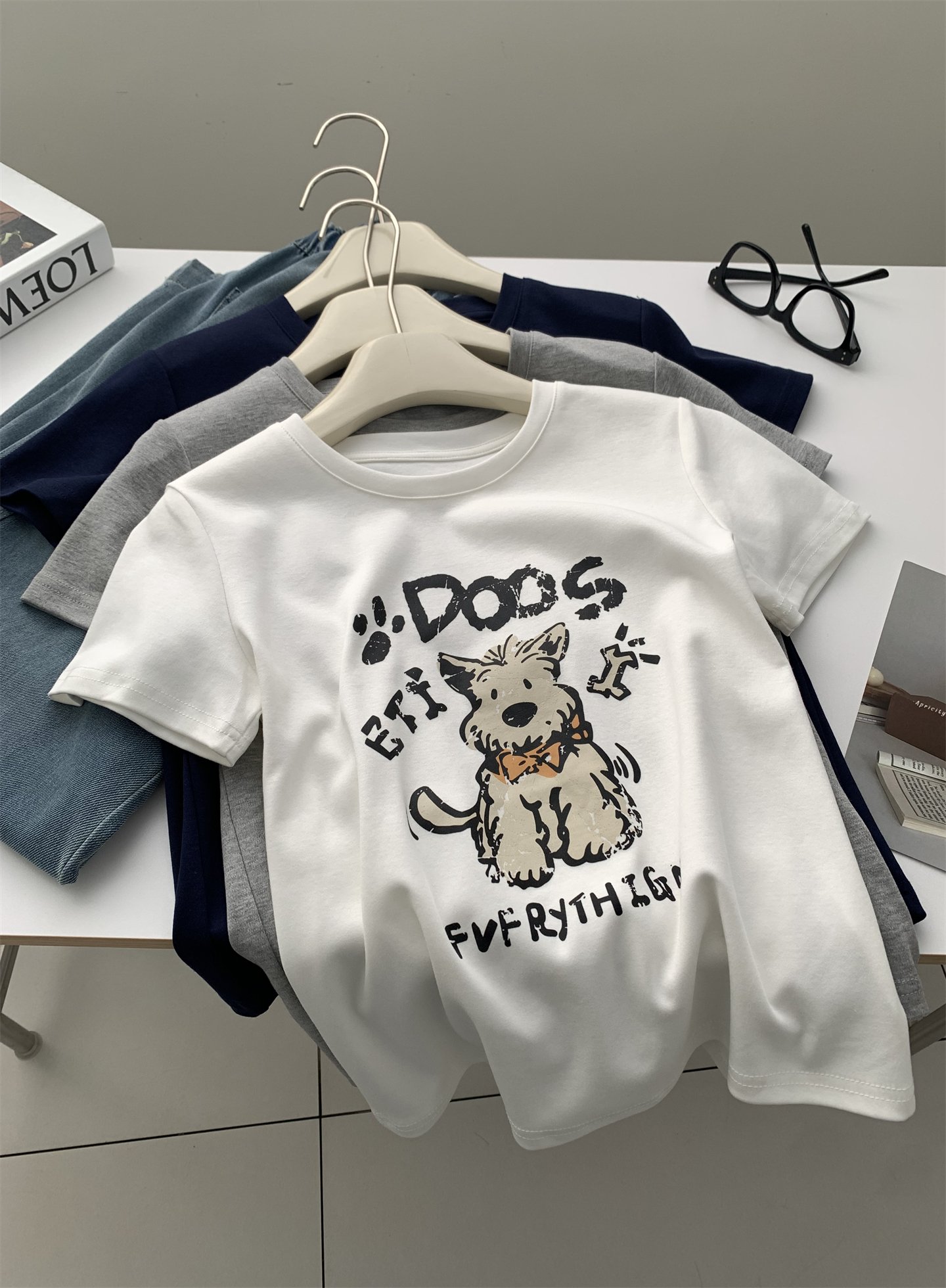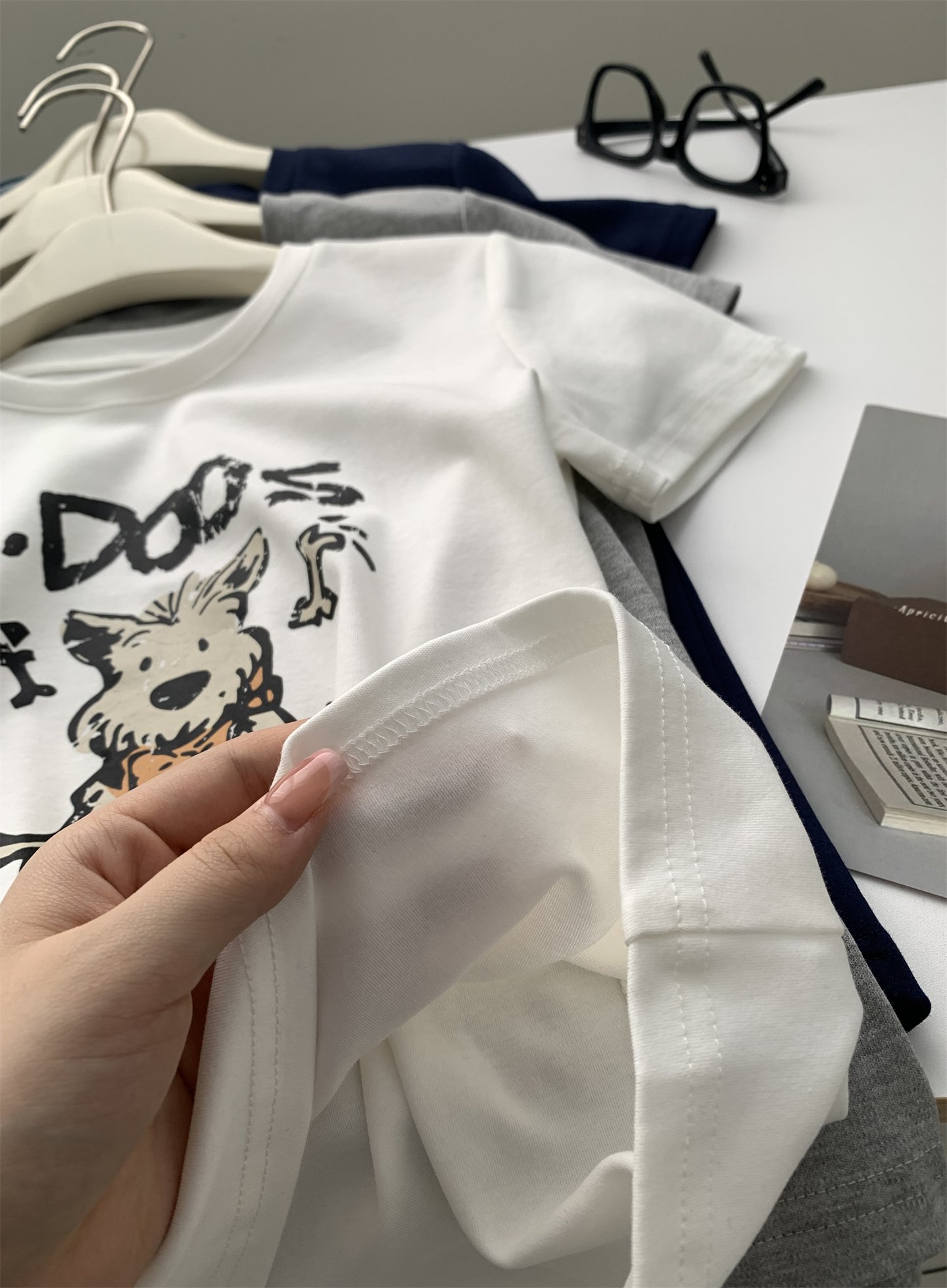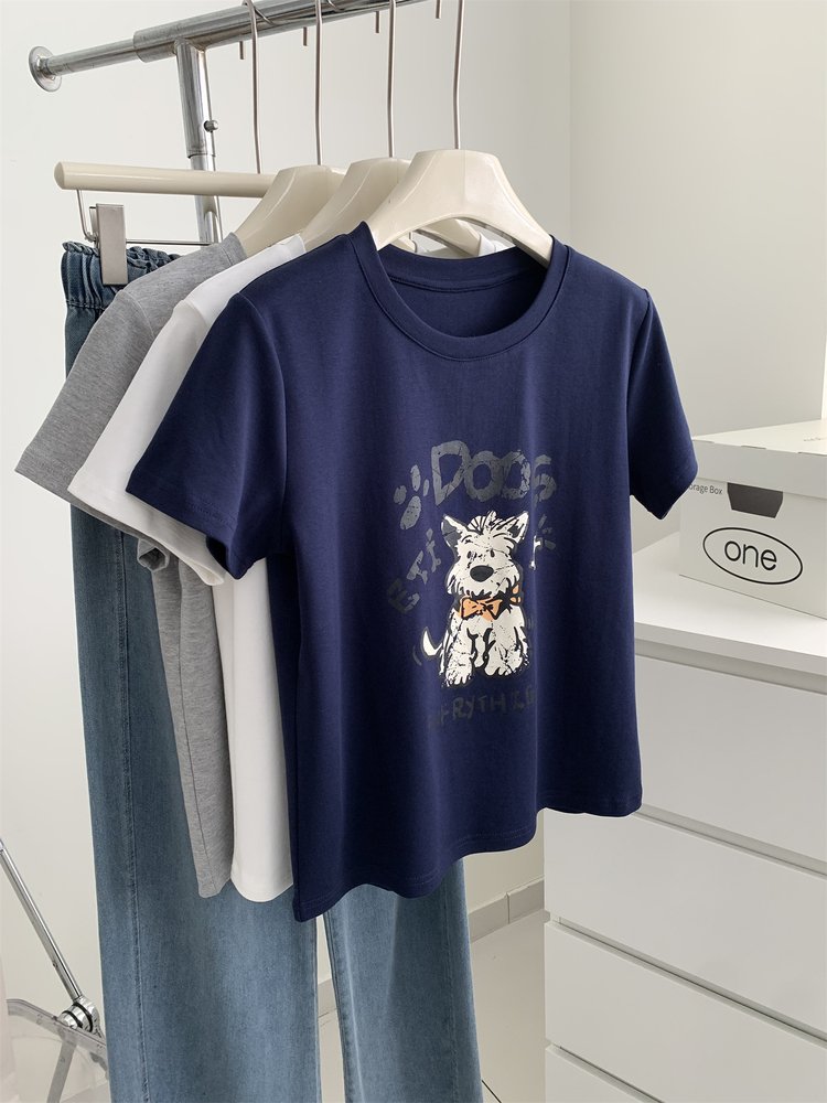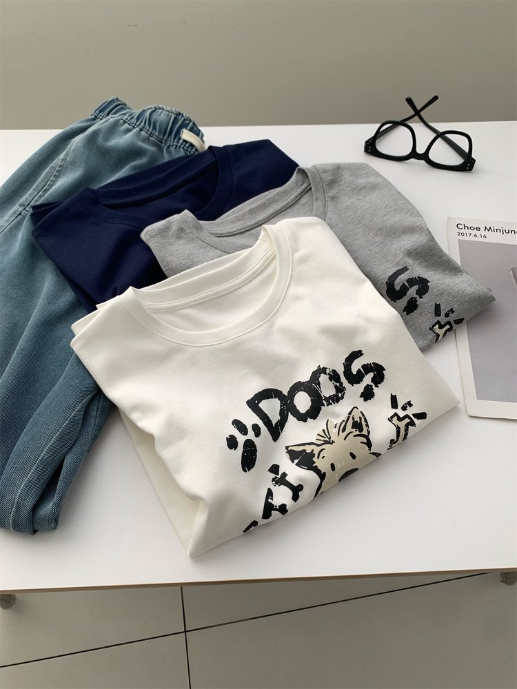 Vapetix M 85-105 pounds-L 105-125 pounds Summer Korean-style youthful dog print letter women’s petite slim-fitting versatile round neck regu
