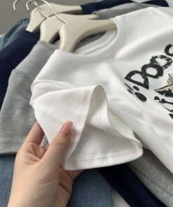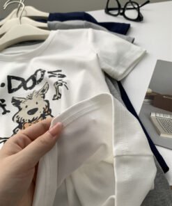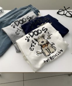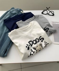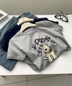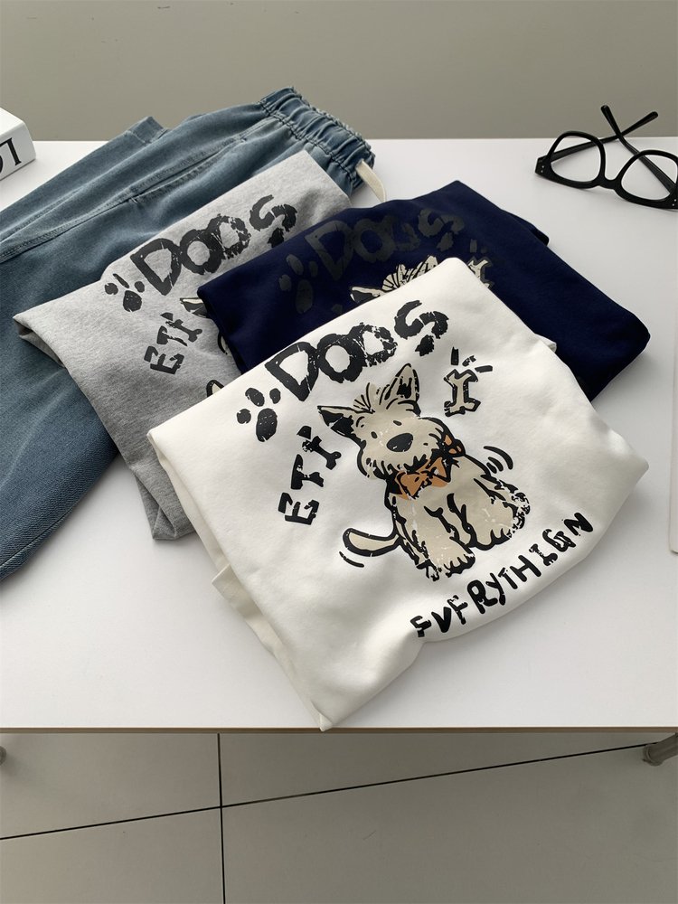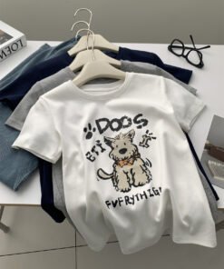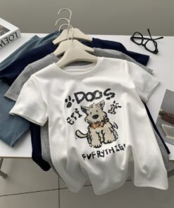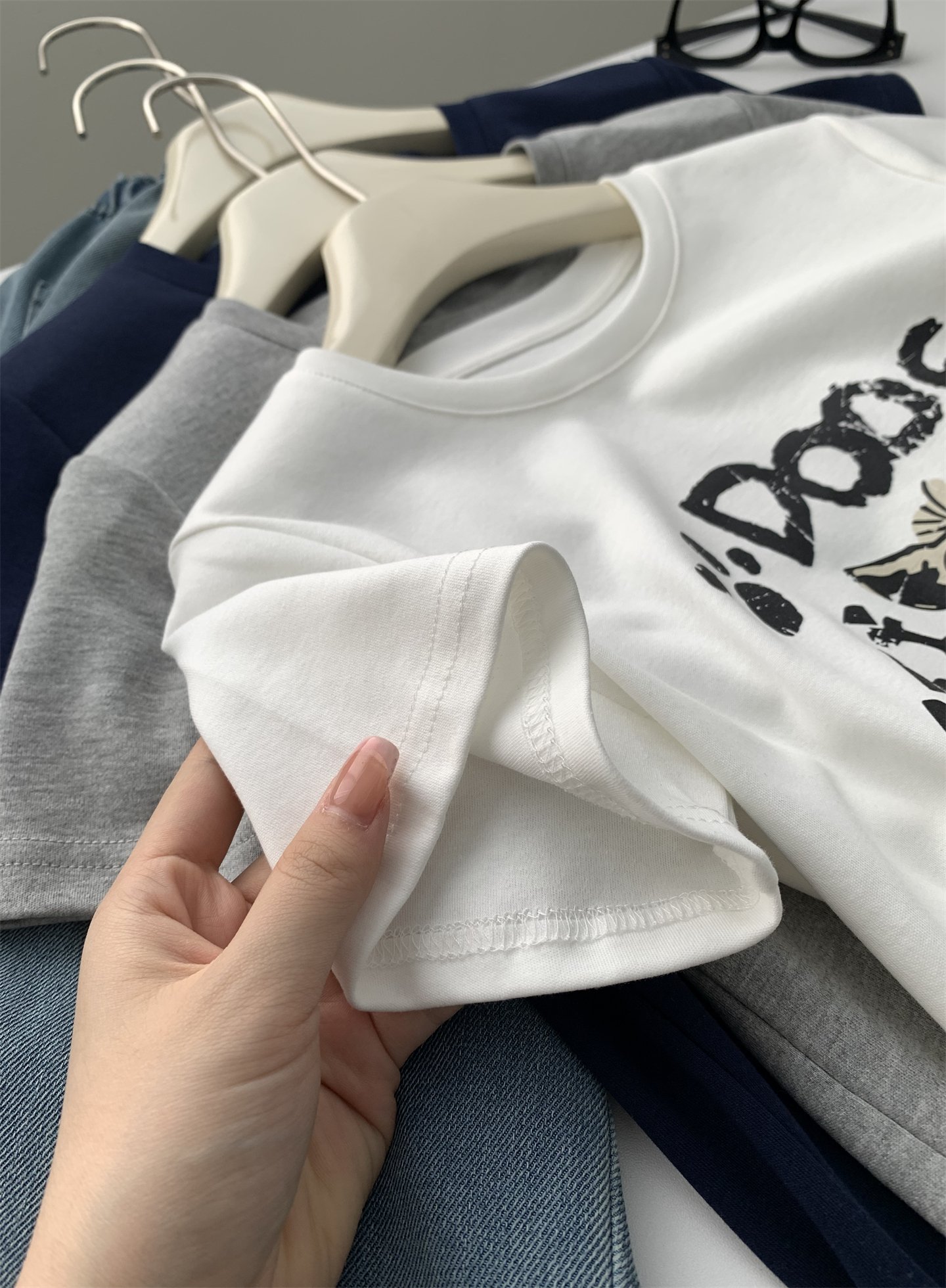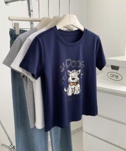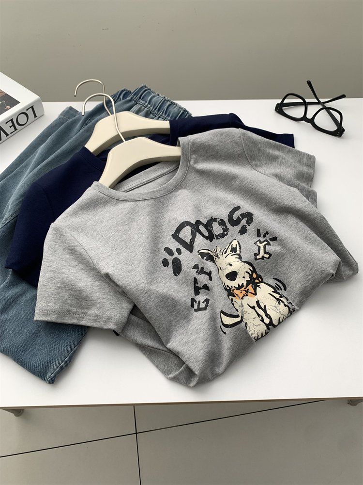 Vapetix M 85-105 pounds-L 105-125 pounds Summer Korean-style youthful dog print letter women’s petite slim-fitting versatile round neck regu