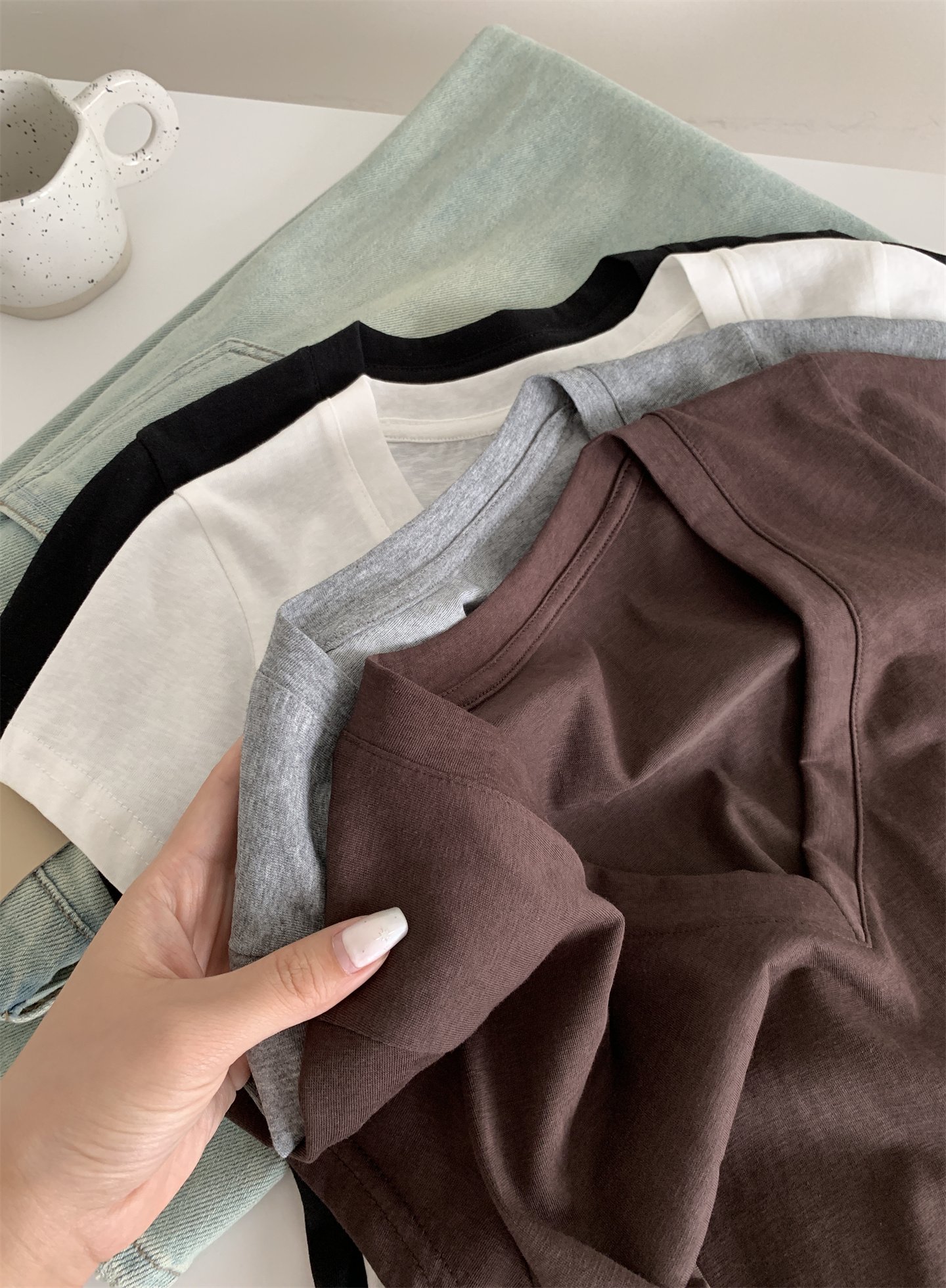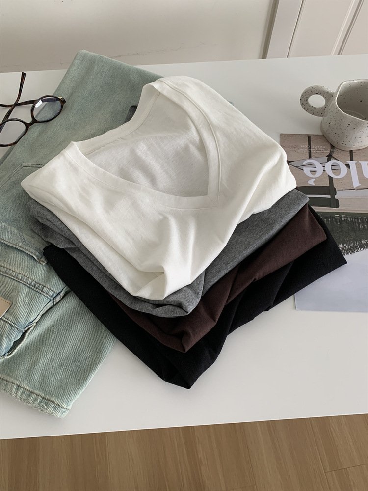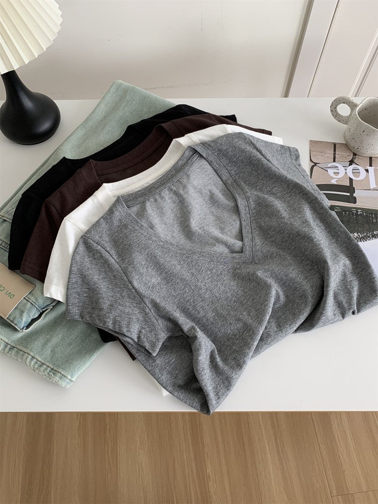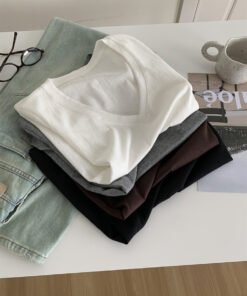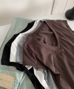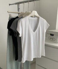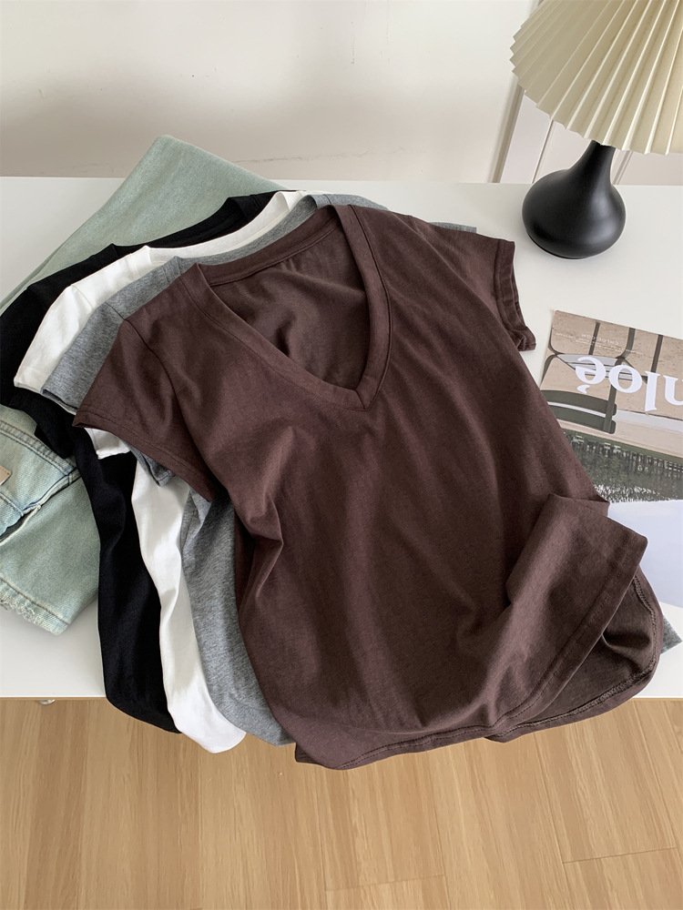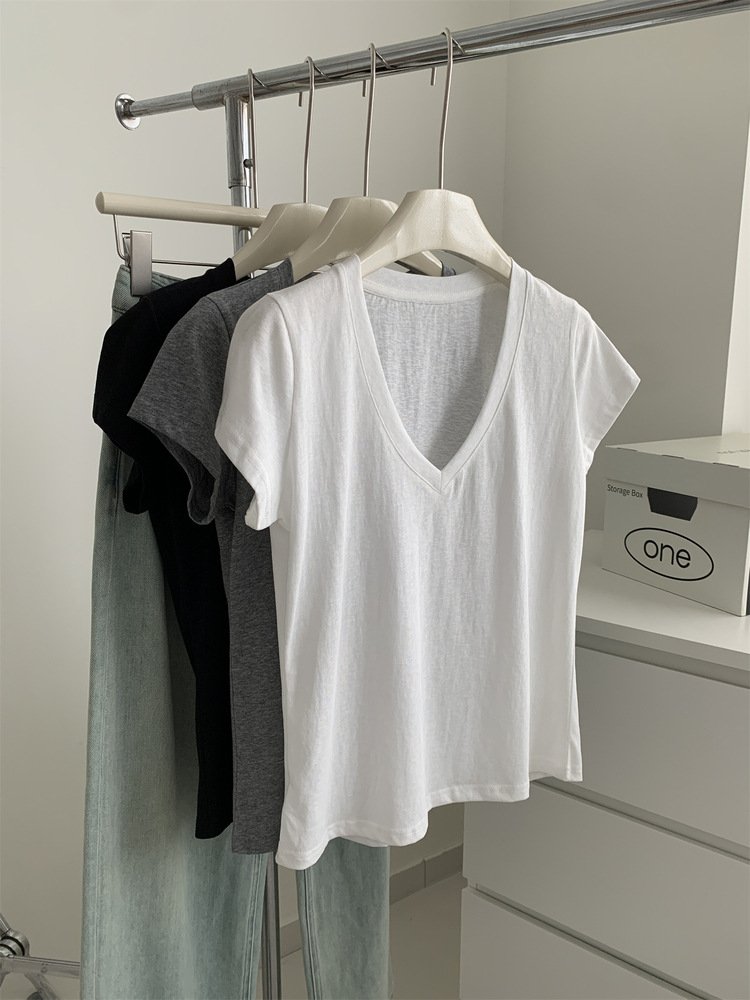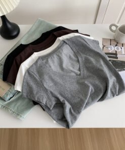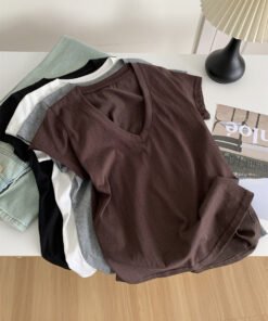 Vapetix M 90-105 lbs-L 105-120 lbs Relaxed and Korean-style versatile thin cotton-like texture V-neck fly-sleeve women’s slimming shor