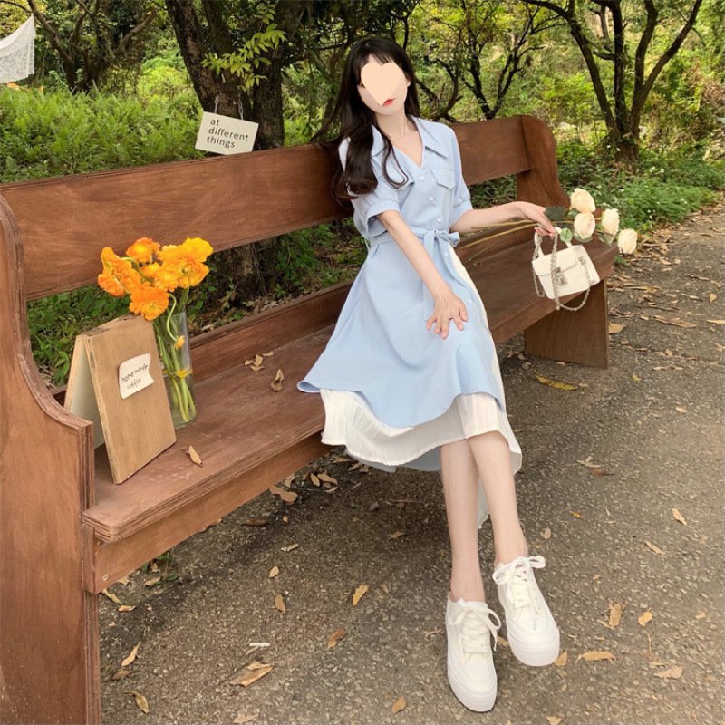 Vapetix M suggests 80-105 pounds-4XL size suggestion: 170-185 lbs 2025 Summer New Retro French Collar Length Dress Design Sense Niche Personality Waist Cinching Slim