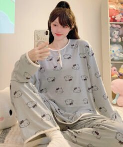 Vapetix M-XL 【New Elegant】Women’s Long Sleeve Winter Sleepwear Set with Thick 280g Double-Faced Fleece Cartoon H