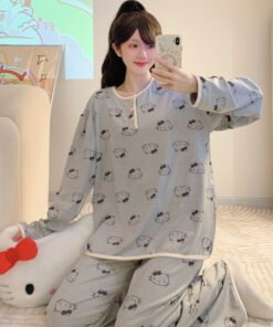 Vapetix M-XL 【New Elegant】Women’s Long Sleeve Winter Sleepwear Set with Thick 280g Double-Faced Fleece Cartoon H
