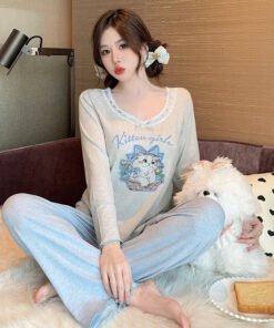 Vapetix M-XL 【With Unremovable Chest Pads】Spring and Autumn Long-Sleeve Women’s Modal Cat Sweet Homecoming Suit