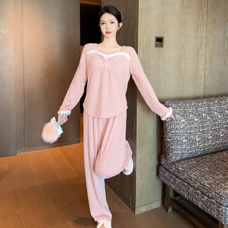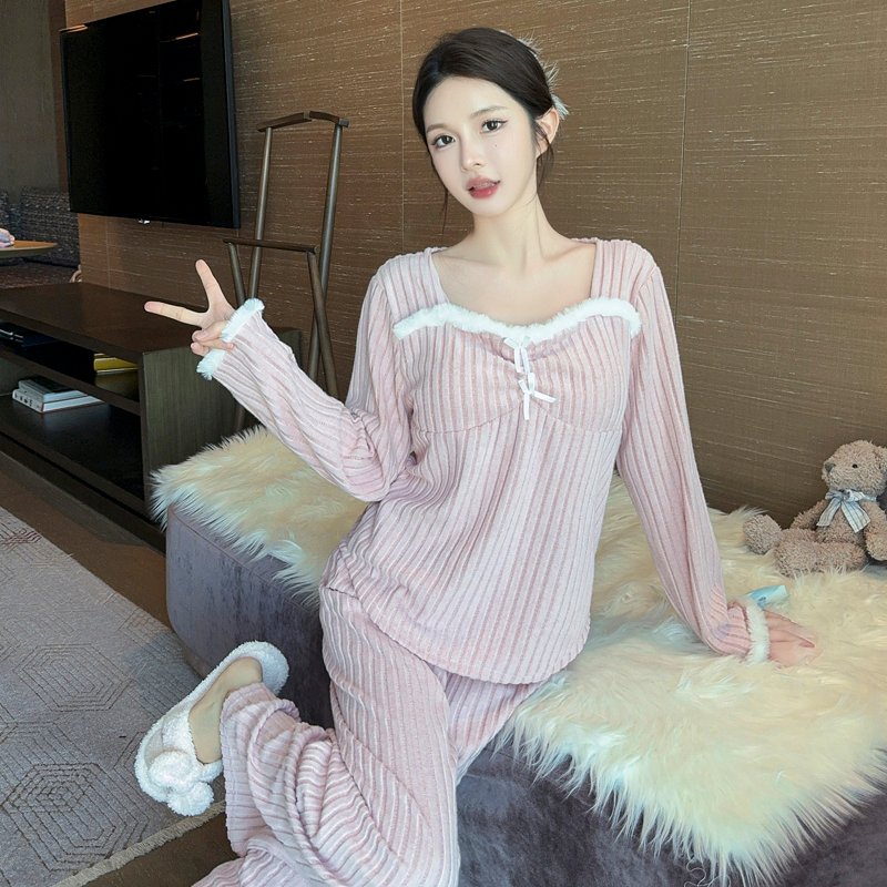 Vapetix M-XL 2 ribbon non-detachable chest pad [Xinya] autumn plus velvet pajamas women’s cashmere pit strips sm