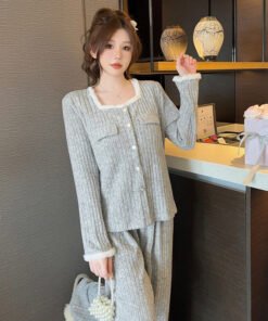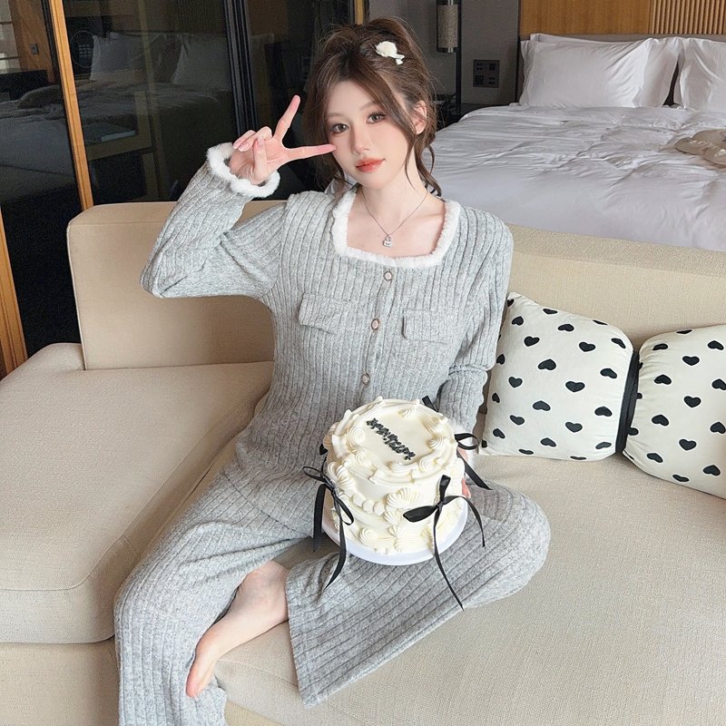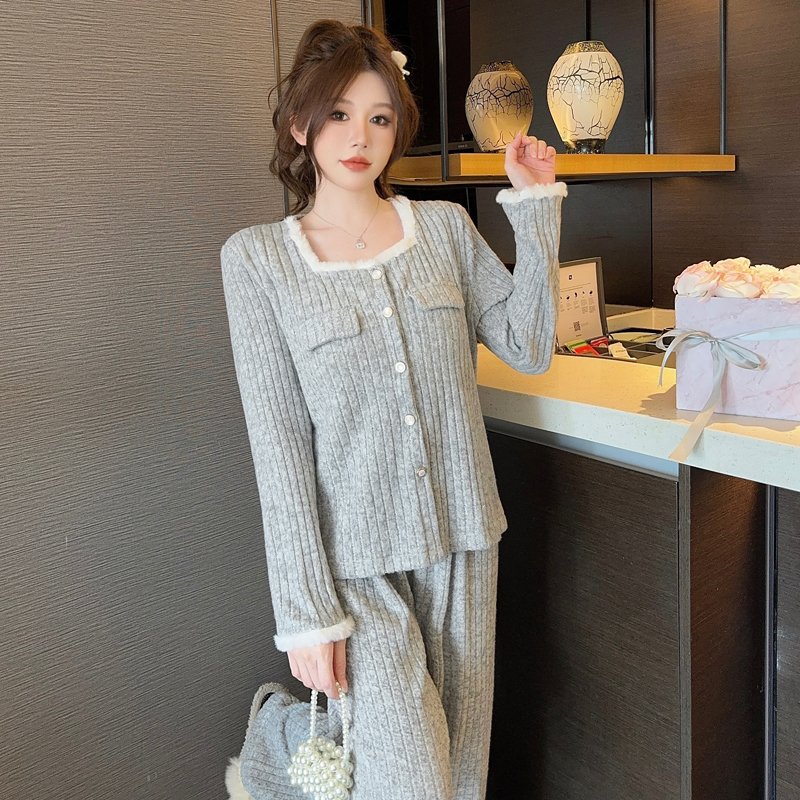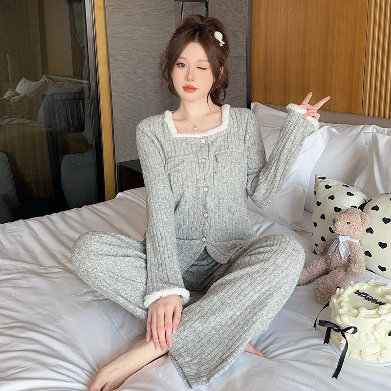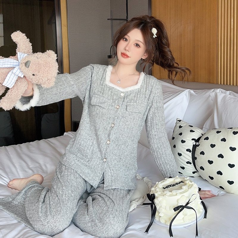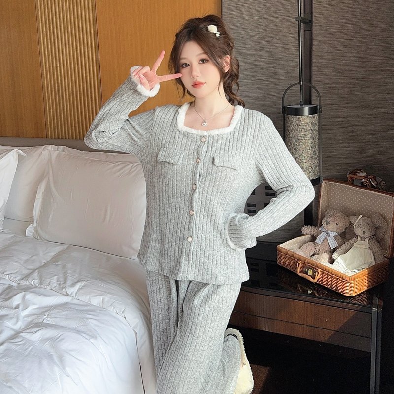 Vapetix M-XL With non-detachable chest pad [Xinya] autumn plus velvet pajamas women’s cashmere pit cardigan xiao