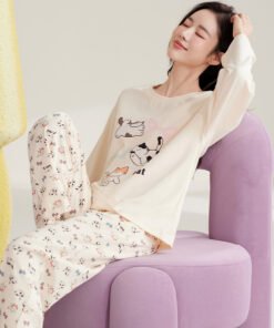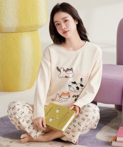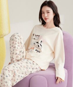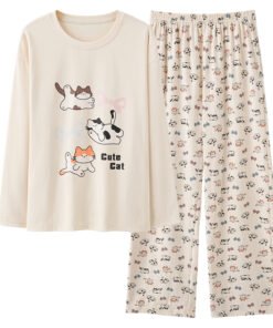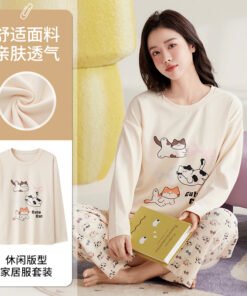 Vapetix M-XXL Autumn New Cotton-Like Women’s Round Neck Long Sleeve Long Pants Pajama Set for Women Casual Home W
