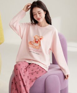Vapetix M-XXL Autumn New Cotton-Like Women’s Round Neck Long Sleeve Long Pants Pajama Set for Women Casual Homeco