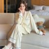 Vapetix M-XXL Cashmere Korean Style Casual Fixed-Chest Padded Pajamas Autumn/Winter V-Neck Lace Solid Color Cashm