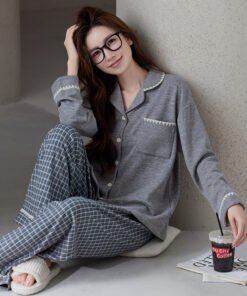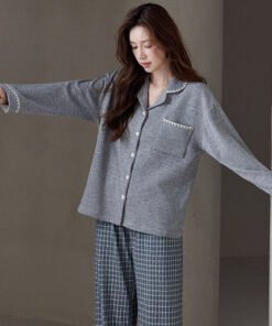 Vapetix M-XXL Cashmere Silk Double Lapel Cardigan Long Sleeve Plaid Trousers Autumn and Winter Home Clothes Cute