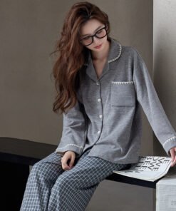 Vapetix M-XXL Cashmere Silk Double Lapel Cardigan Long Sleeve Plaid Trousers Autumn and Winter Home Clothes Cute