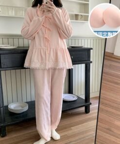 Schreibe die erste Bewertung für „Vapetix M-XXL Fall new arrival women’s woven cloud cotton sleepwear set with chest padding, featuring a sweet pri“ Antworten abbrechen