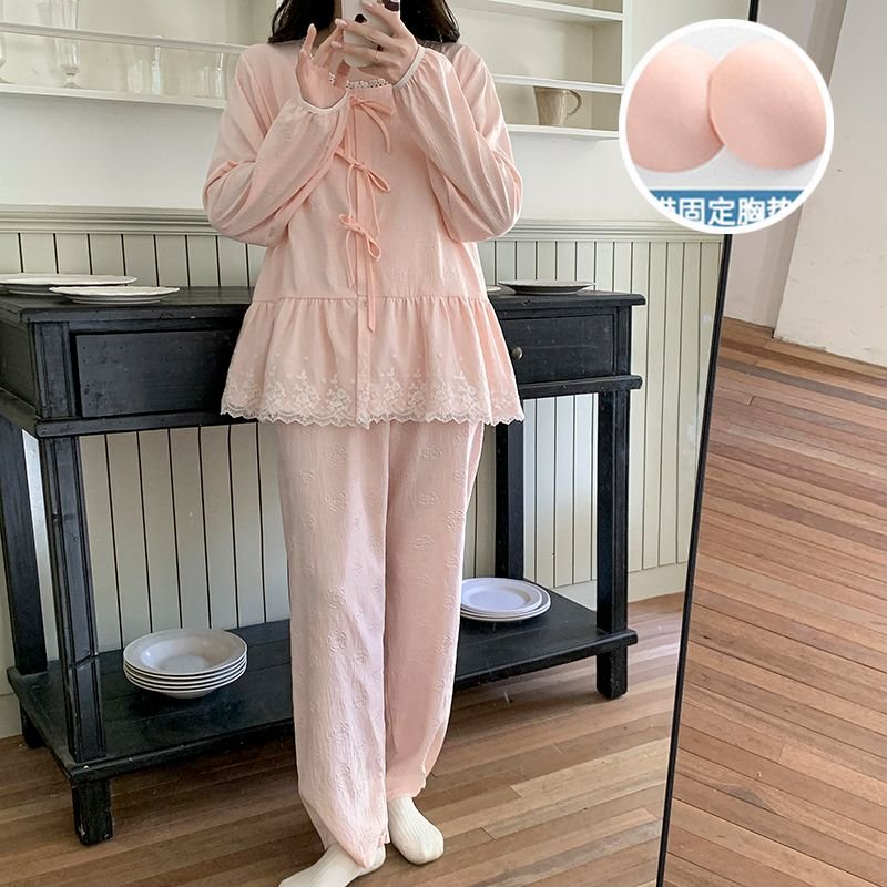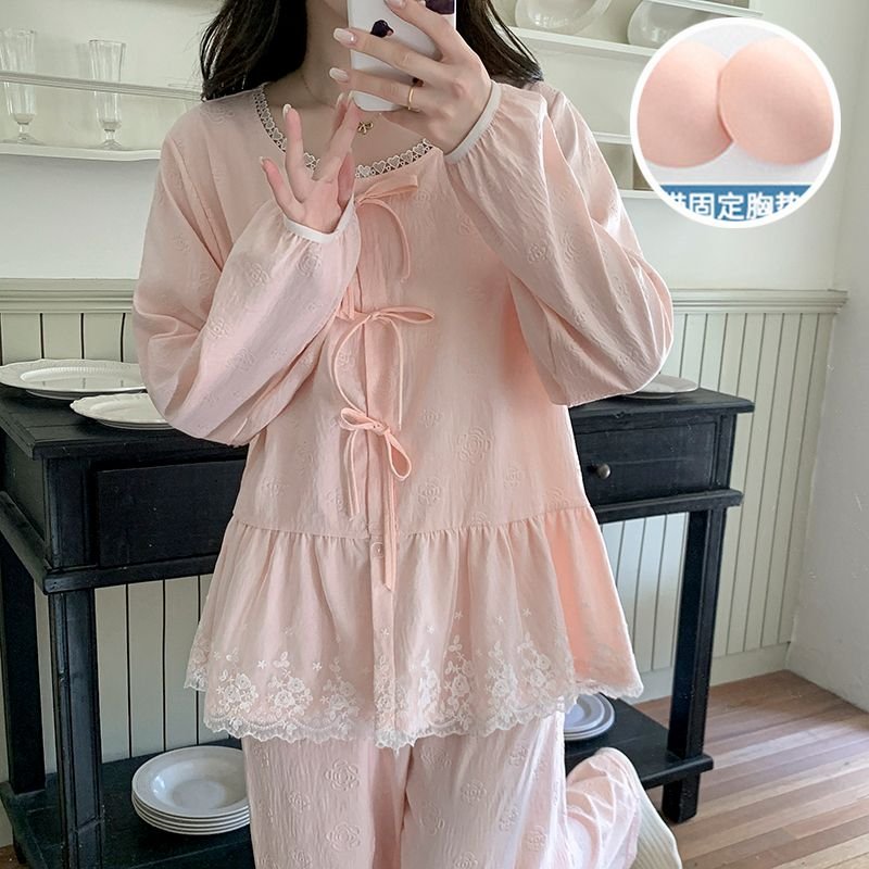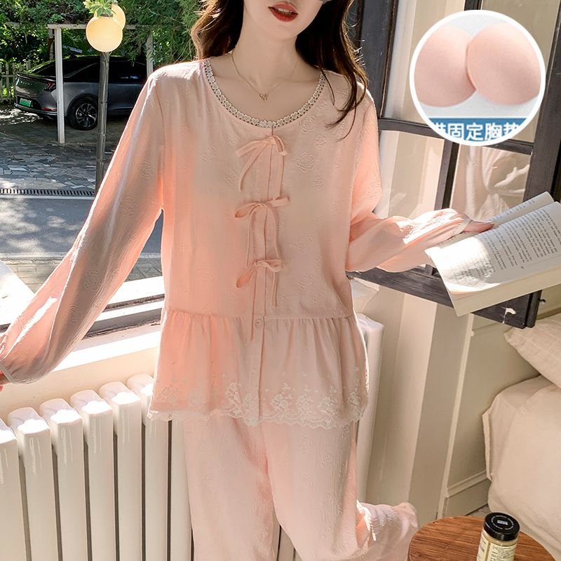 Vapetix M-XXL Fall new arrival women’s woven cloud cotton sleepwear set with chest padding, featuring a sweet pri