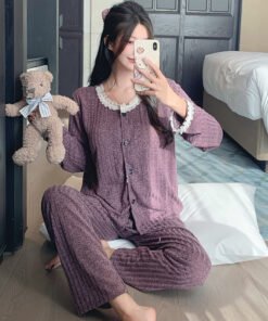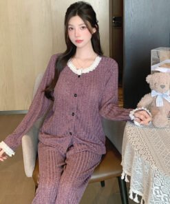 Vapetix M-XXL Fixed Chest Padded Ribbed Cashmere Thin Round Neck Fringe Front Fastener Long Sleeve Long Pants Spr