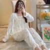Vapetix M-XXL Jo Mengran 2025 Autumn Cloud Cotton Square Collar Long Sleeve Long Pants Pajama Set for Women Princ