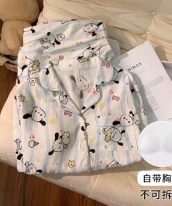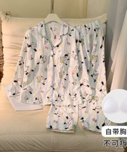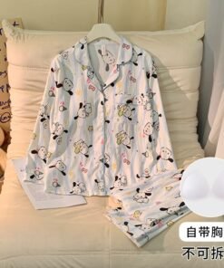Vapetix M-XXL Ladies‘ Autumn New Sleepwear Set with Bra Cup Knitted Cloud Cotton Cardigan Sweet Long Sleeve Home