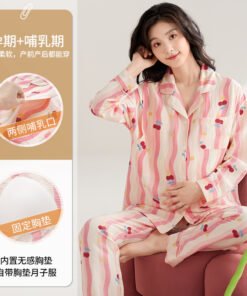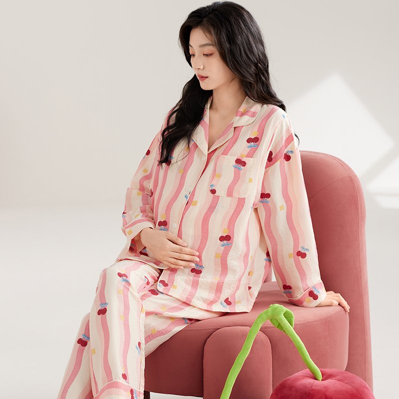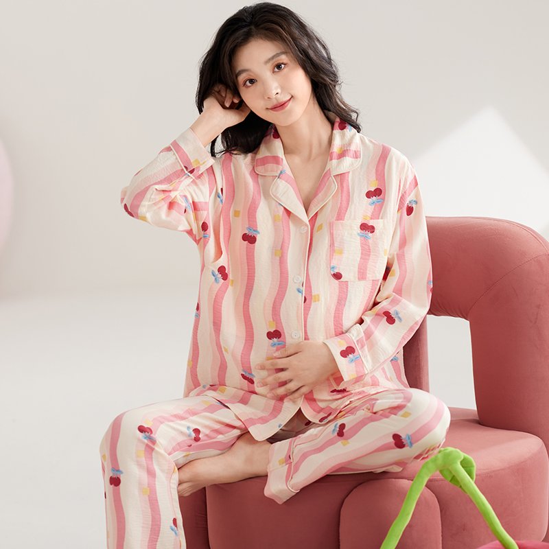 Vapetix M-XXL Maternity Breastfeeding Sleepwear Spring and Autumn Women’s Cloudy Gauze Cardigan Turn-down Collar