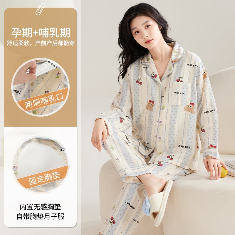 Vapetix M-XXL Maternity nursing pajamas spring and autumn women’s cloud cotton gauze cardigan postpartum clothing