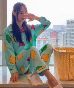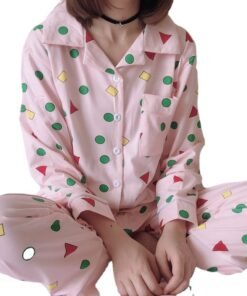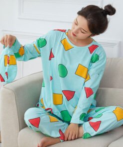 Vapetix M-XXL New Style Crayon Shin-chan Spring and Autumn Long-sleeved Pajamas Women’s Cartoon Sweet Cute Geomet