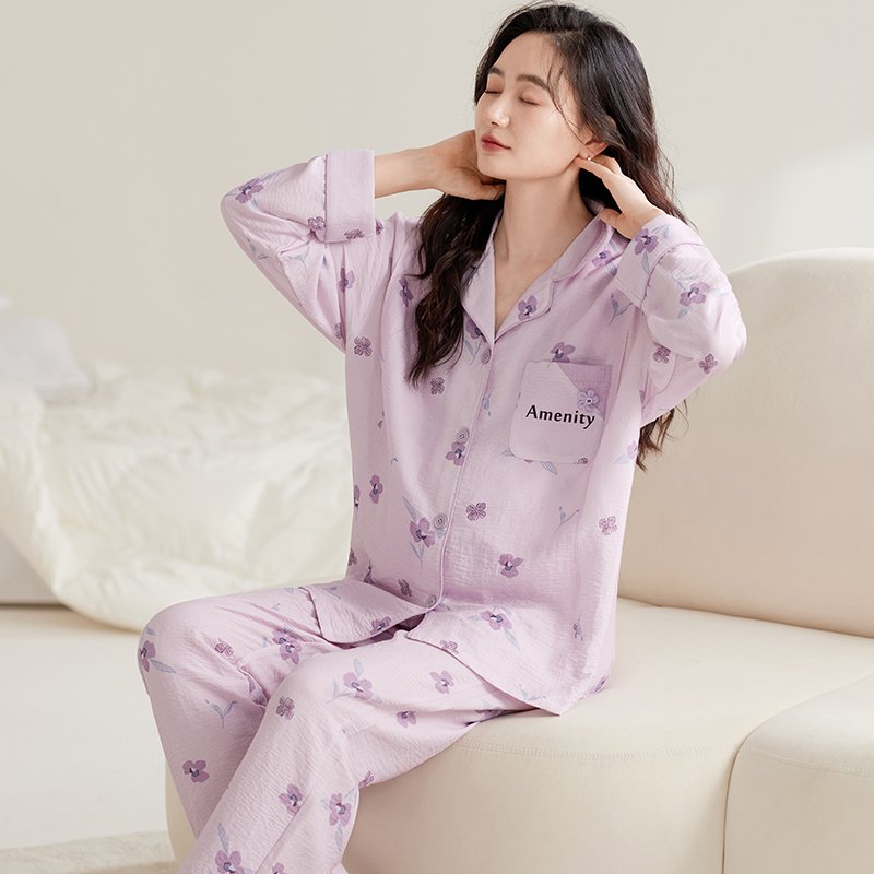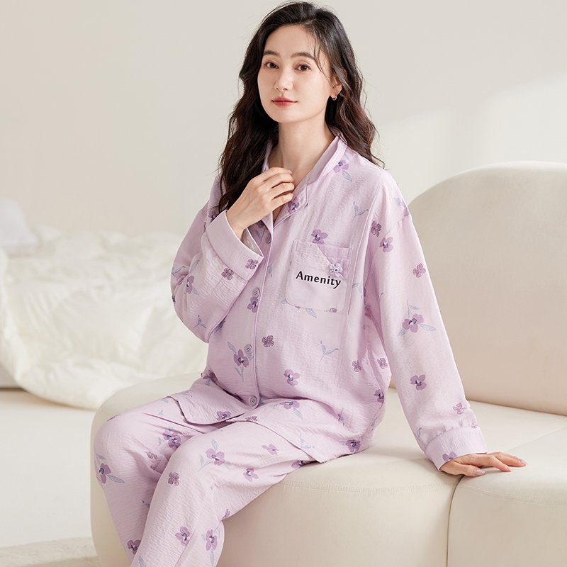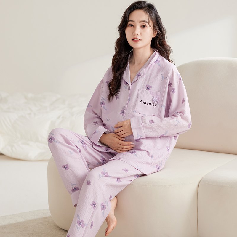 Vapetix M-XXL New style pajamas for women, maternity, spring and autumn, cloud cotton gauze cardigan with lapel,