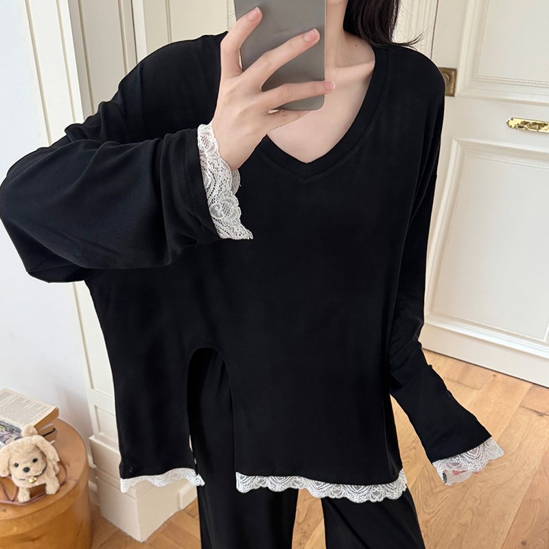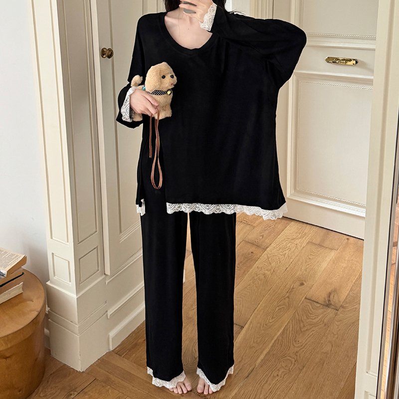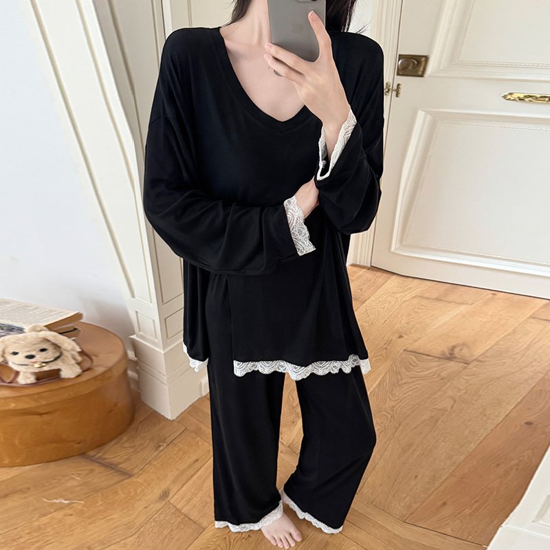 Vapetix M-XXL Orange Heart [14th Batch] Autumn New Cotton Lined Pajamas Set for Women Sweet Lace Edge Loose Two-P