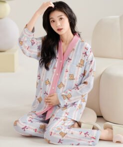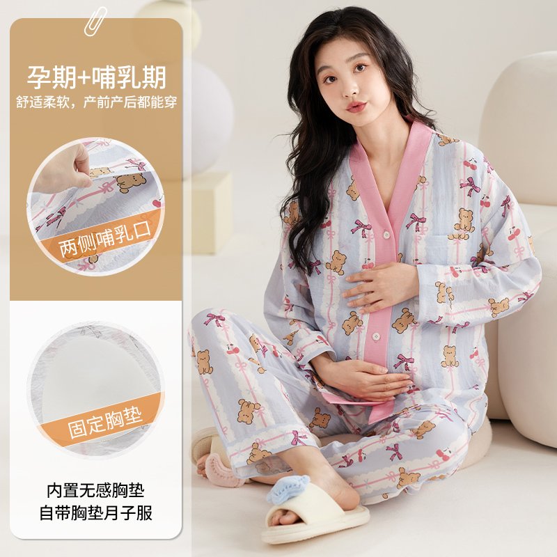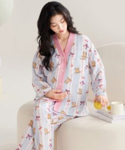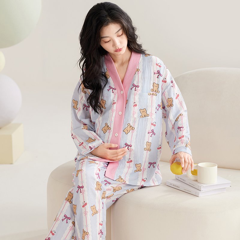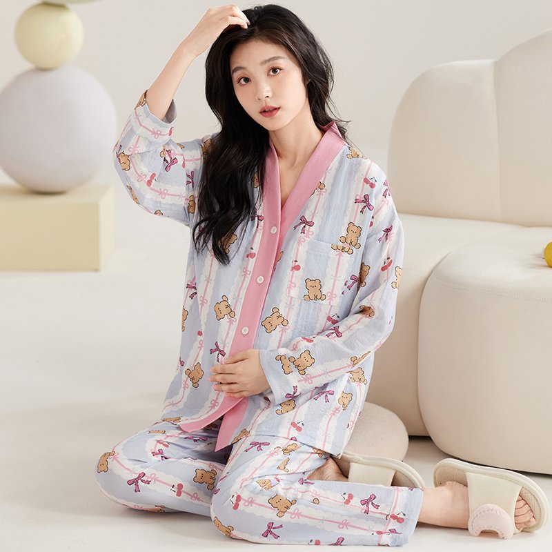 Vapetix M-XXL Pajama Set for Postpartum Women: Cloud Cotton Gauze Cardigan and Traditional Chinese Dress for Spri