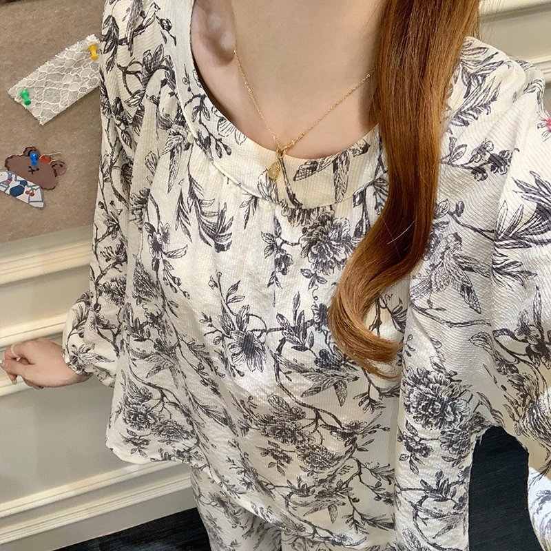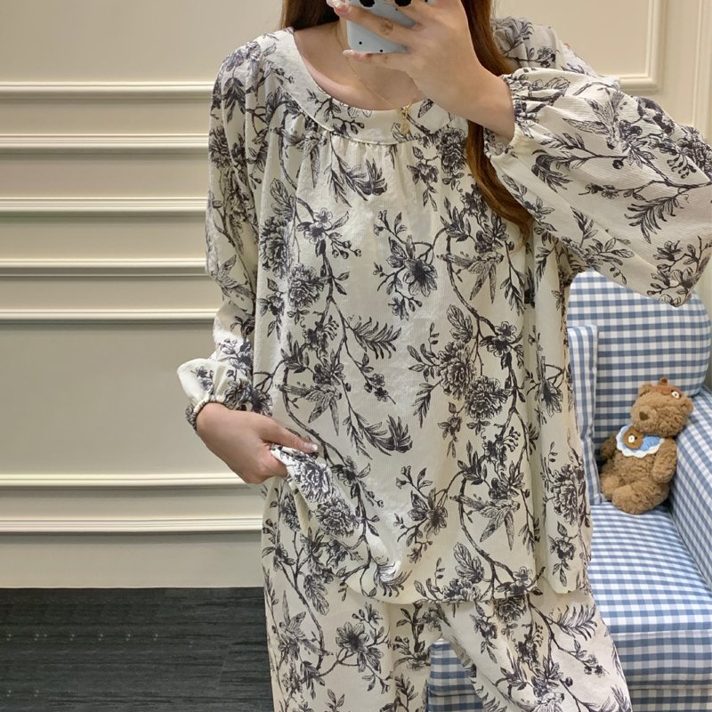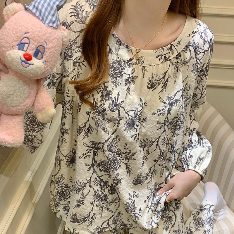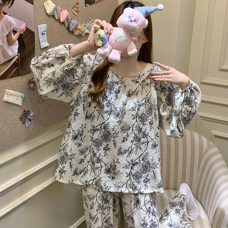 Vapetix M-XXL Princess-style padded cloud cotton crew neck long sleeve long pants home clothes for autumn and win