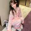 Vapetix M-XXL Qi Mengran 2025 Autumn Cloud Cotton Square Collar Long Sleeve Long Pants Nightgown Set for Women Pr