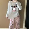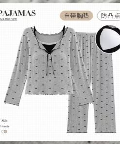 Vapetix M-XXL Spring and Autumn Floral Edge Butterfly Bow Pajama Set for Women with Bralette, Ice Silk Ribbed Lon
