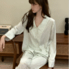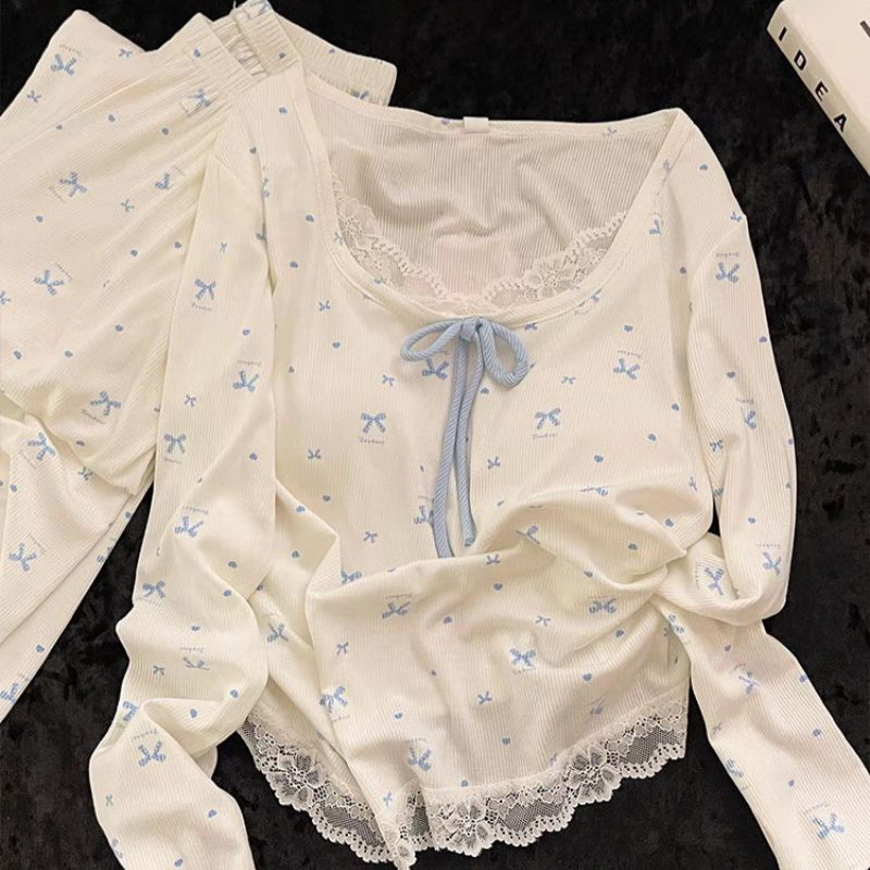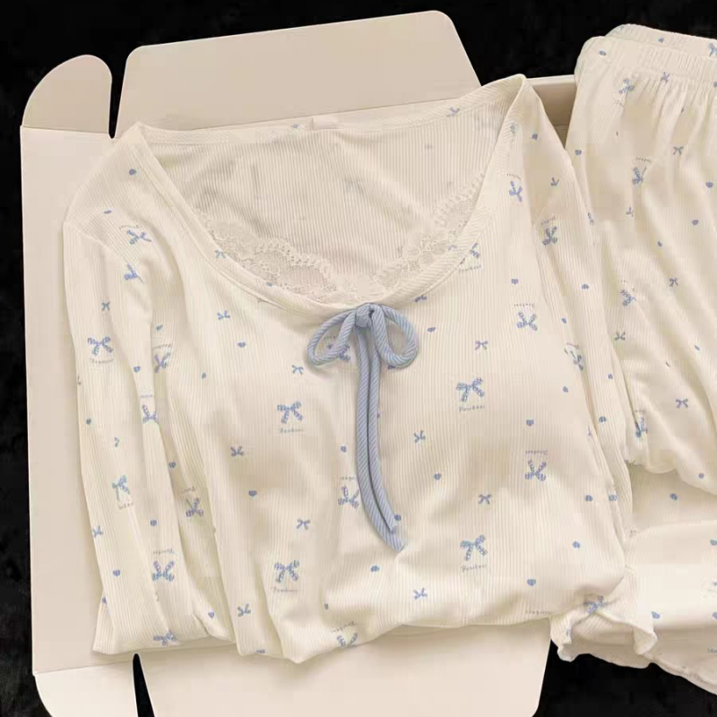 Vapetix M-XXL Spring and Autumn Flower Edge Bow Tie Blouse with Chest Pads, Women’s Ice Silk Ribbed Long Sleeve L