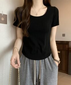 Schreibe die erste Bewertung für „Vapetix M-XXL Square Collar Fishbone Short Sleeve T-Shirt for Women – Korean 2024 Summer Fitted Slimming Short-Sl“ Antworten abbrechen