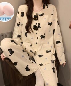 Schreibe die erste Bewertung für „Vapetix M-XXL Women’s 2025 Autumn 180g Cotton-Blend Blouse with Collar, Long Sleeve, Long Pants Pajama Set with B“ Antworten abbrechen