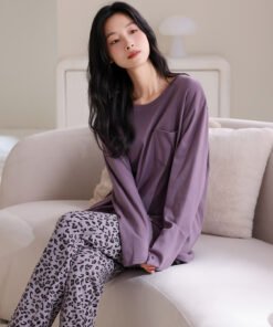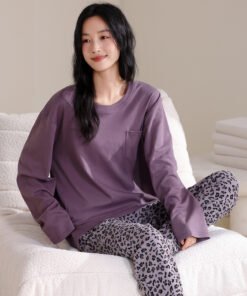 Vapetix M-XXL Women’s 2025 Autumn Pure Cotton Crew Neck Long Sleeve Long Pants Pajama Set Casual Comfort Sweet Ho