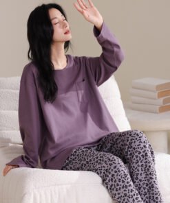 Vapetix M-XXL Women’s 2025 Autumn Pure Cotton Crew Neck Long Sleeve Long Pants Pajama Set Casual Comfort Sweet Ho