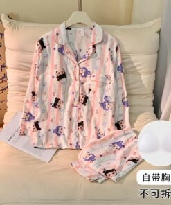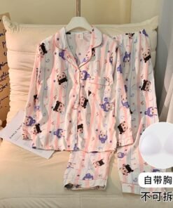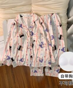 Vapetix M-XXL Women’s Autumn New Pajama Set with Bra Cup Knitted Cloud Cotton Cardigan Sweet Long Sleeve Home Wea