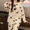 Vapetix M-XXL Women’s Cloud Cotton Collarless Open Front Long Sleeve Long Pants Pajama Set for Autumn 2025 Leisur