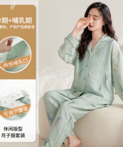 Vapetix M-XXL Women’s Cloud Cotton Gauze Cardigan Pregnancy Sleepwear Spring and Autumn Season Postpartum Nursing
