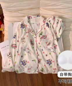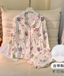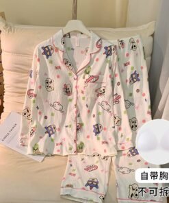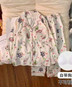 Vapetix M-XXL Women’s Fall New Sleepwear Set with Bra Cup Knitted Cloud Cotton Cardigan Sweet Long Sleeve Homecom