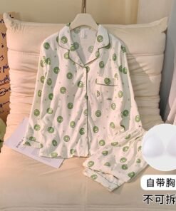 Vapetix M-XXL Women’s New Autumn Pajama Set with Chest Pads, Knitted Cloud Cotton Cardigan, Sweet Long-Sleeve Hom
