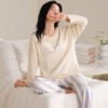 Vapetix M-XXL Women’s Set of 2025 Autumn Pure Cotton Crew Neck Long Sleeve Long Pants Pajamas – Casual, Comfortab