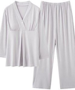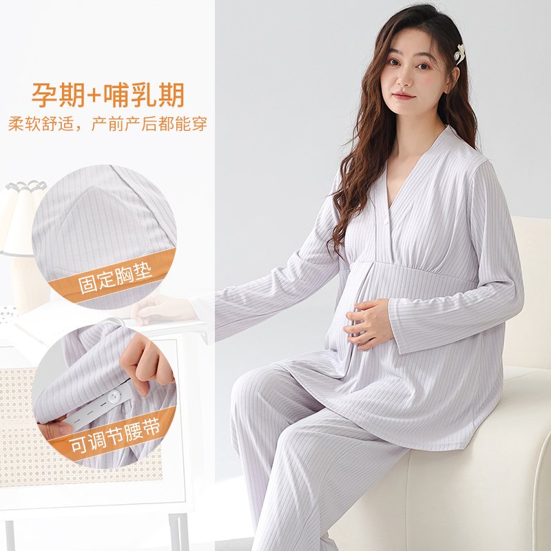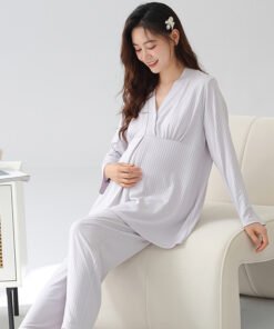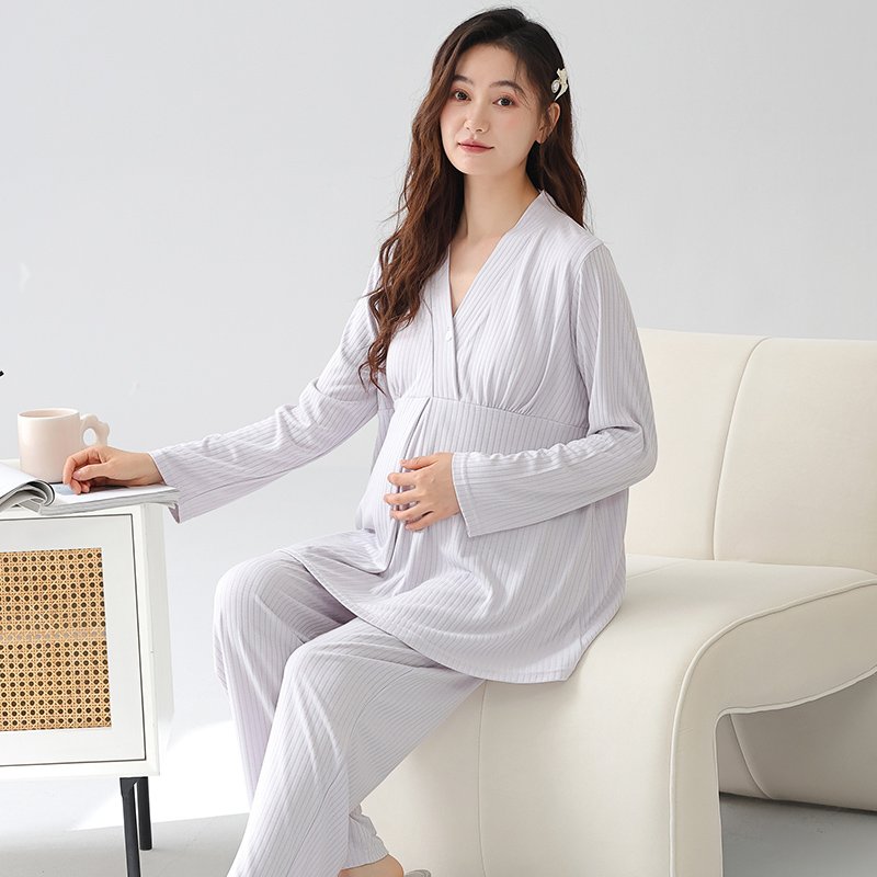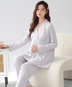 Vapetix M-XXL Women’s Spring and Autumn New Long Sleeve Pajamas with Modal Blouse and Breast Pad, Postpartum and