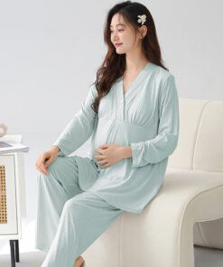 Vapetix M-XXL Women’s Spring and Autumn New Long Sleeve Pajamas with Modal Blouse with Pads for Pregnant Women Po