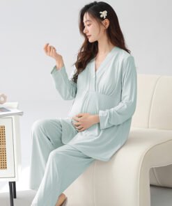 Vapetix M-XXL Women’s Spring and Autumn New Long Sleeve Pajamas with Modal Blouse with Pads for Pregnant Women Po